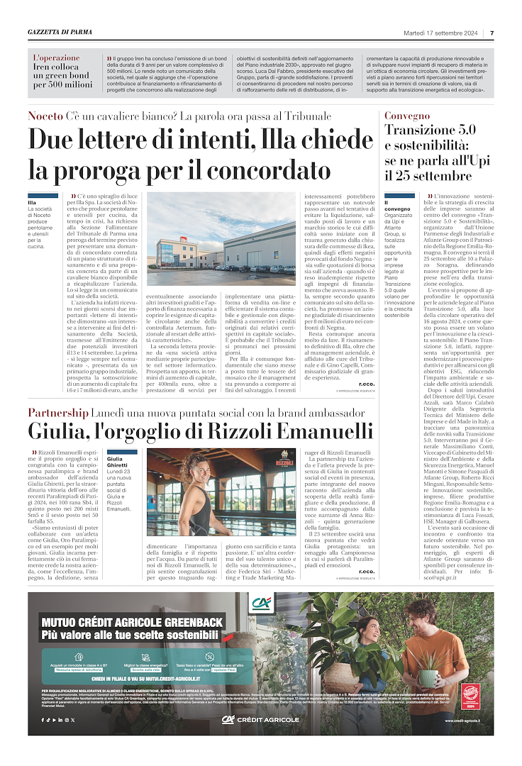 Leggi l'articolo completo in allegato EVENTO "Transizione 5.0 e Sostenibilità" sulla Gazzetta di Parma